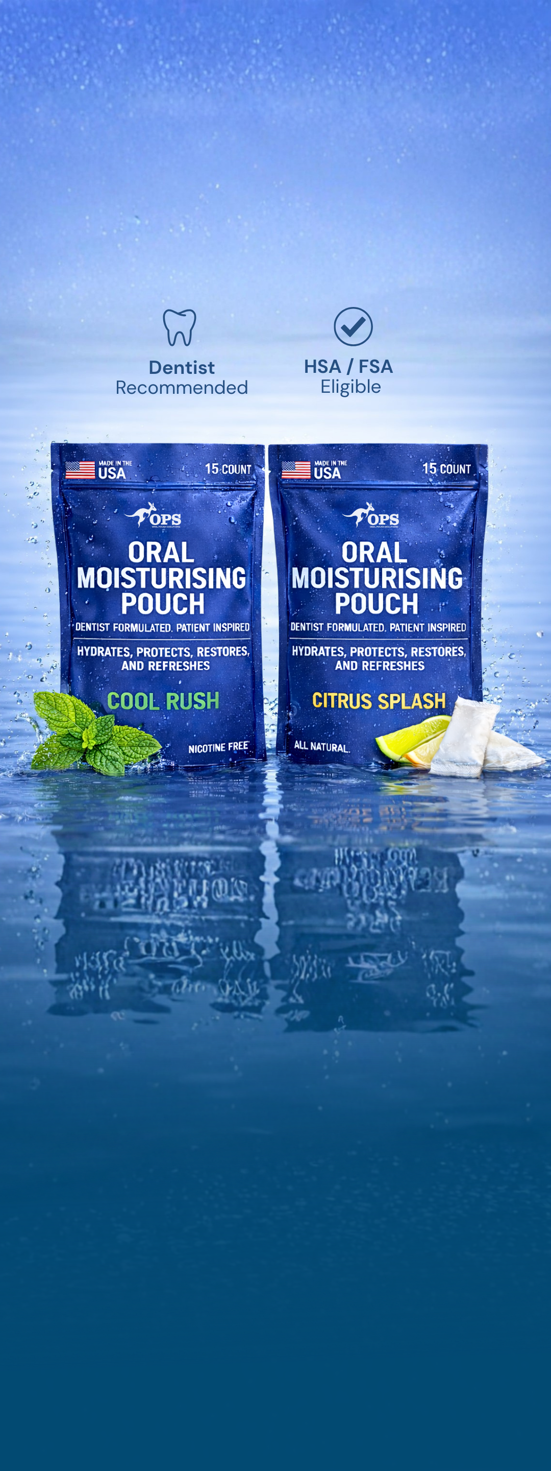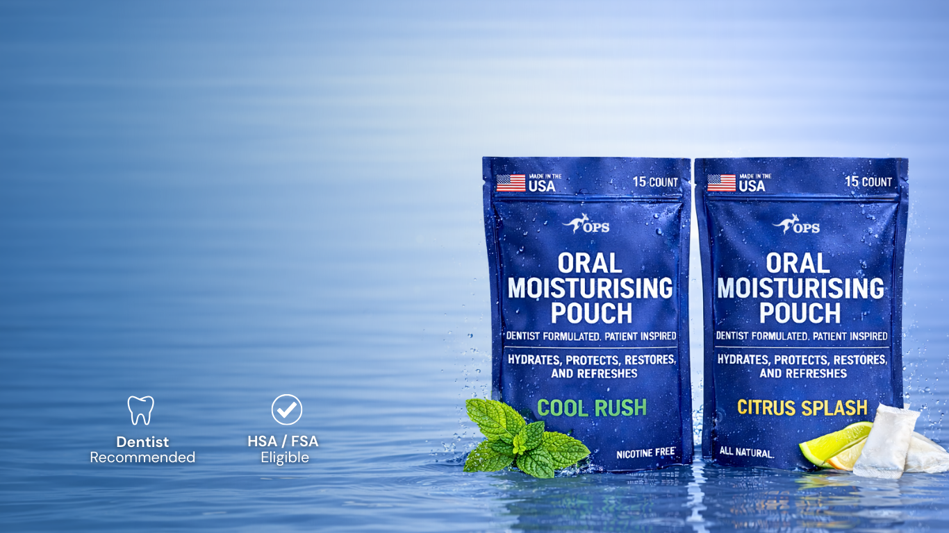 Each dentist formulated pouch helps hydrate, protect, refresh, and restore your oral environment in a single, discreet pouch.